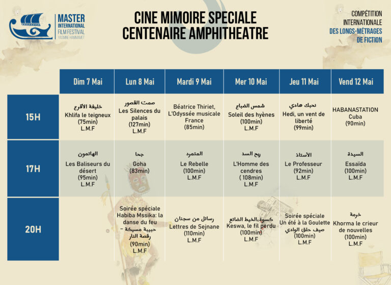 La 2ème édition du Master International Film Festival Yasmine Hammamet – MIFF, se déroulera du 06 au 13 Mai à la Medina Yasmine Hammamet.
