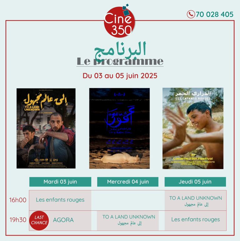 Juin 02 2025 Non Programme de la salle “Ciné 350” du 03 au 05 juin 2025 à la cité de la culture Chedly Klibi Navigation de l’article Article précédentPrécédente Programme de la salle “Ciné 350” du 27 mai au 01 juin 2025Article suivantSuivante Appel à candidatures : financement public pour les associations culturelles