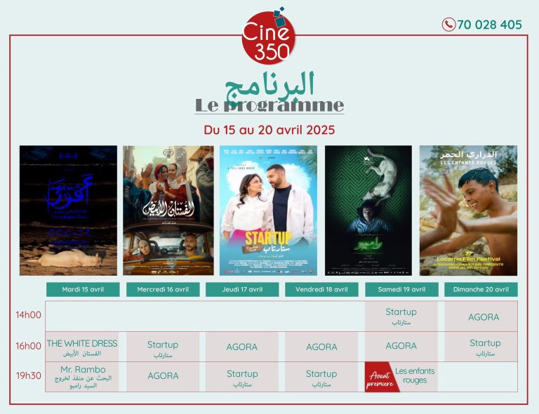 Avr 15 2025 Non Programme de la salle “Ciné 350” du 15 au 20 avril 2025 à la cité de la culture Chedly Klibi Navigation de l’article Article précédentPrécédente Cycle de projections : TAÏEB LOUHICHI (1948 – 2018) du 15 au 19 avril 2025 à la Cinémathèque TunisienneArticle suivantSuivante Tarek Ben Chaâbane directeur de la 36ème édition des Journées Cinématographiques de Carthage (JCC)