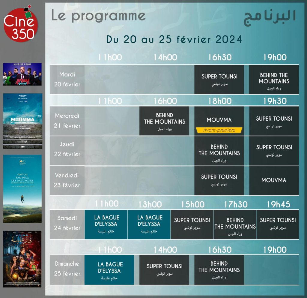 Fév 19 2024 0 Programme de la salle “Ciné 350” du 20 au 25 Février 2024 – Cité de la Culture Chedli klibii Navigation de l’article Article précédentPrécédente Programme de la salle Ciné 350 du 13 au 18 Février 2024Article suivantSuivante 3ème édition des « Assises des Ciné-Clubs » du 01 au 02 mars 2024 à la Cité de la Culture Chedli-Klibi