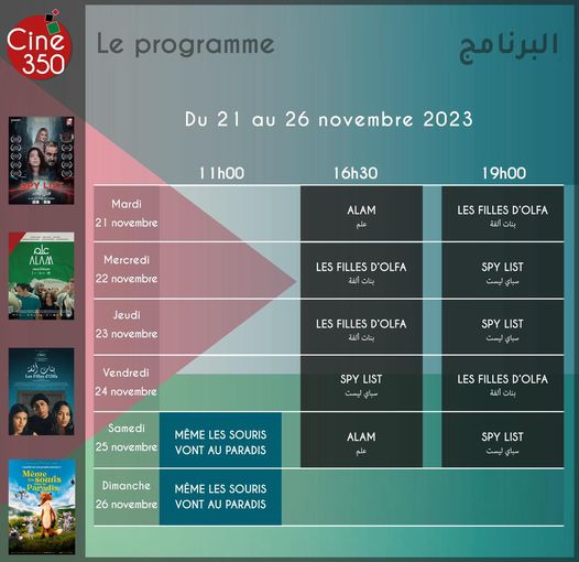 Nov 21 2023 0 Programme de la salle Ciné 350 du 21 au 26 novembre 2023 – Cité de la Culture – Chedli Klibi Navigation de l’article Article précédentPrécédente Programme de la salle Ciné 350 du 14 au 19 novembre 2023 – Cité de la Culture – Chedli KlibiArticle suivantSuivante Workshop en étalonnage avec Nizar Souisii: 24 novembre et 01 décembre à la salle Digital Lab – Cité de la Culture Chedli-Klibi