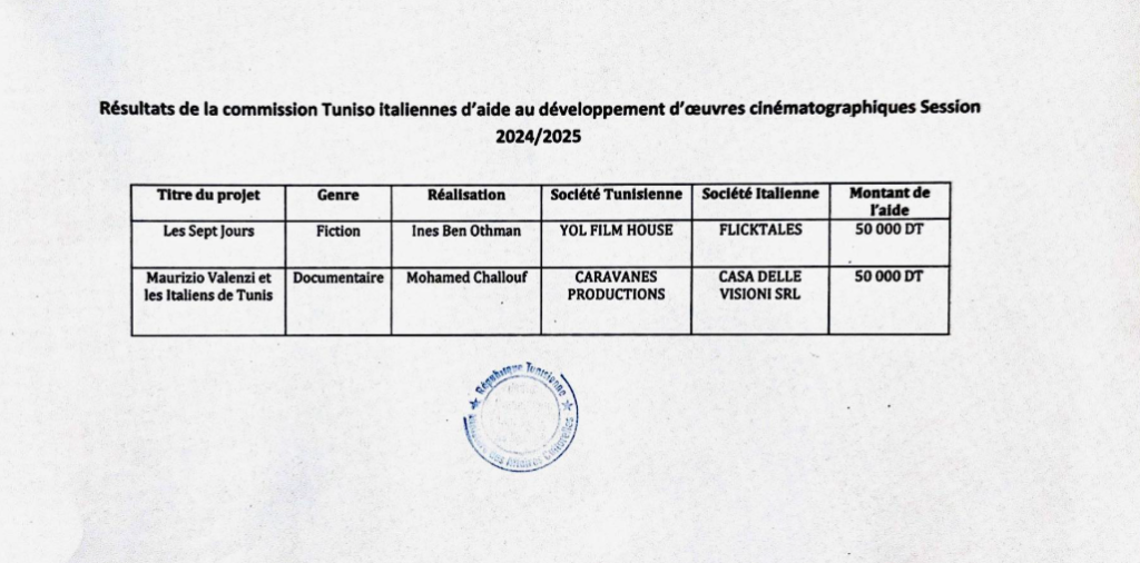 Home » Résultats des travaux de la commission tuniso-italienne d’aide au développement d’œuvres cinématographiques – Session 2025